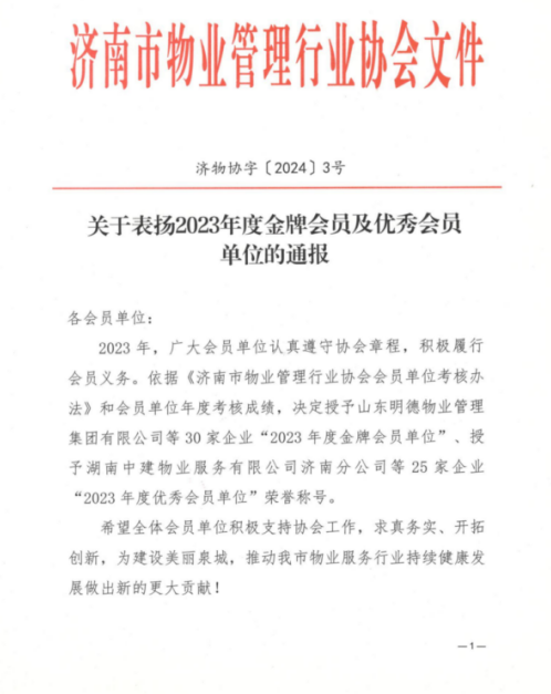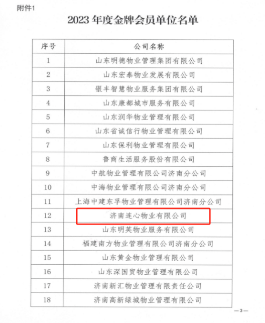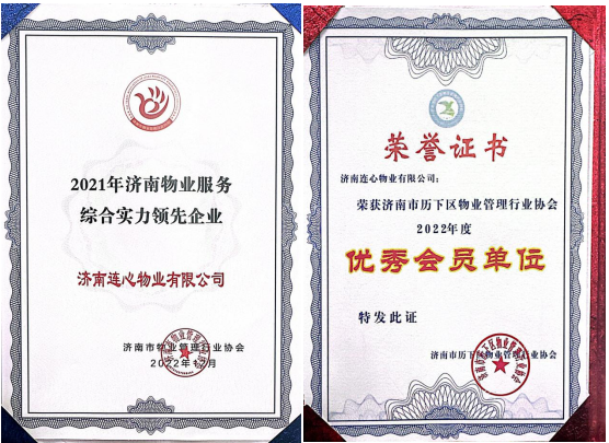 專業(yè)進(jìn)取。2023年連心物業(yè)持續(xù)精進(jìn),載譽(yù)前行。獲評(píng)“歷下區(qū)東西部協(xié)作和鄉(xiāng)村振興先進(jìn)企業(yè)”,“山東省文化館項(xiàng)目被評(píng)為濟(jì)南市2023年度物業(yè)服務(wù)標(biāo)準(zhǔn)化5A等級(jí)標(biāo)準(zhǔn)化項(xiàng)目”,“產(chǎn)發(fā)基金大廈項(xiàng)目被評(píng)為濟(jì)南市2023年度物業(yè)服務(wù)標(biāo)準(zhǔn)化3A等級(jí)標(biāo)準(zhǔn)化項(xiàng)目”,“濟(jì)南市物業(yè)管理行業(yè)協(xié)會(huì)2023年度金牌會(huì)員單位”,2023年2月獲評(píng)“歷下區(qū)物業(yè)管理行業(yè)協(xié)會(huì)綜合實(shí)力領(lǐng)先企業(yè)、優(yōu)秀會(huì)員單位”,“歷城區(qū)物業(yè)管理行業(yè)協(xié)會(huì)物業(yè)行業(yè)創(chuàng)新獎(jiǎng)、優(yōu)秀會(huì)員單位”等稱號(hào),以高質(zhì)量發(fā)展獲政府及行業(yè)認(rèn)可。