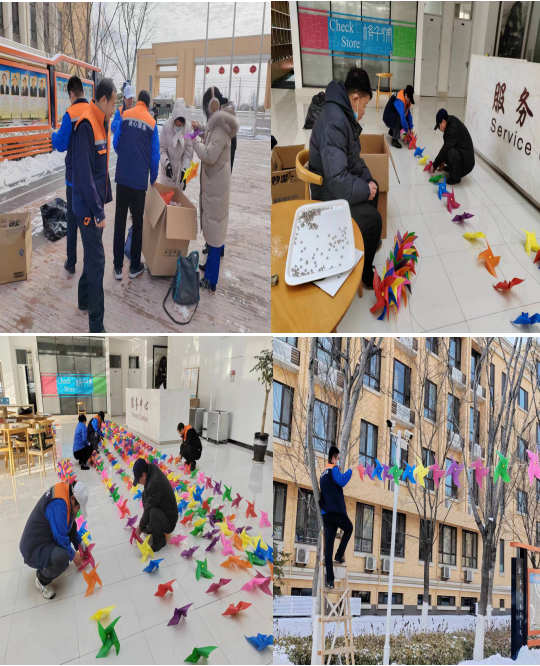 學(xué)校為給師生營造更好的校園環(huán)境,在學(xué)校中間大道懸掛風(fēng)車,在緊張的開學(xué)工作下,項(xiàng)目經(jīng)理組織所有條線員工一起折風(fēng)車近800個(gè),組織安排有序,有折的、有串的、有固定的、有掛的,物業(yè)人其樂融融,通過團(tuán)結(jié)合作,共同完成了校園風(fēng)車風(fēng)景的創(chuàng)作,得到了師生及家長的贊美,并保障了開學(xué)前各項(xiàng)活動(dòng)的有序進(jìn)行。