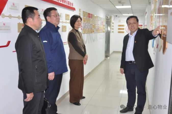 濟(jì)南連心物業(yè)有限公司黨支部書記、董事長(zhǎng)王宏勇陪同濟(jì)南市工商聯(lián)領(lǐng)導(dǎo)參觀了公司總部黨建文化墻、工會(huì)“工事共辦”議事廳、連心職業(yè)培訓(xùn)學(xué)校等。黨建文化墻展示了連心物業(yè)在黨建工作及取得的成績(jī)和榮譽(yù)。工事共辦議事廳則是連心物業(yè)推動(dòng)員工參與決策、促進(jìn)民主管理的重要平臺(tái)。