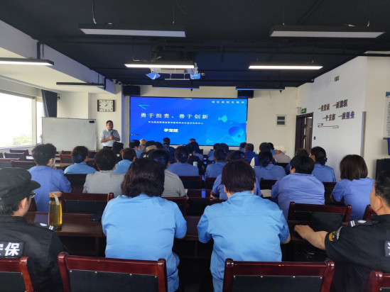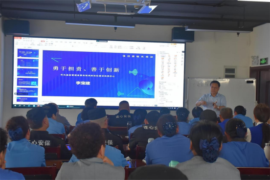 2024年5月11日下午,濟(jì)南連心物業(yè)有限公司舉辦2024年第二季度班組長(zhǎng)、工會(huì)組長(zhǎng)培訓(xùn),濟(jì)南連心物業(yè)有限公司工會(huì)主席李寶建以《勇于擔(dān)責(zé)、善于創(chuàng)新》為題,通過(guò)線上線下相結(jié)合培訓(xùn)方式,為來(lái)自各項(xiàng)目65名班組長(zhǎng)進(jìn)行全面培訓(xùn)。