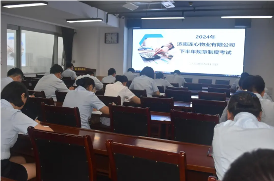 2024年9月13日下午16:30,濟(jì)南連心物業(yè)有限公司在濟(jì)南連心職業(yè)培訓(xùn)學(xué)校1701會議室進(jìn)行2024年下半年規(guī)章制度考試。公司高管、辦公室人員、項目經(jīng)理、項目內(nèi)勤等46名管理人員參加此次考試,這是公司管理人員第40次規(guī)章制度考試。
