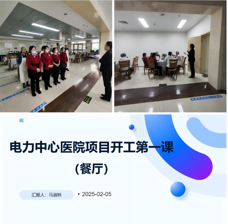 隨著春節(jié)假期的結(jié)束,濟(jì)南連心物業(yè)有限公司駐山東電力中心醫(yī)院項(xiàng)目部于2025年2月5日(正月初八)開(kāi)展開(kāi)工第一課活動(dòng)。此次活動(dòng)通過(guò)觀(guān)看視頻、PPT與現(xiàn)場(chǎng)會(huì)相結(jié)合的形式,進(jìn)一步強(qiáng)化秩序維護(hù)、消防安全、保潔服務(wù)及餐廳服務(wù)質(zhì)量等,為醫(yī)院安全運(yùn)營(yíng)和患者就醫(yī)體驗(yàn)奠定堅(jiān)實(shí)基礎(chǔ)。
