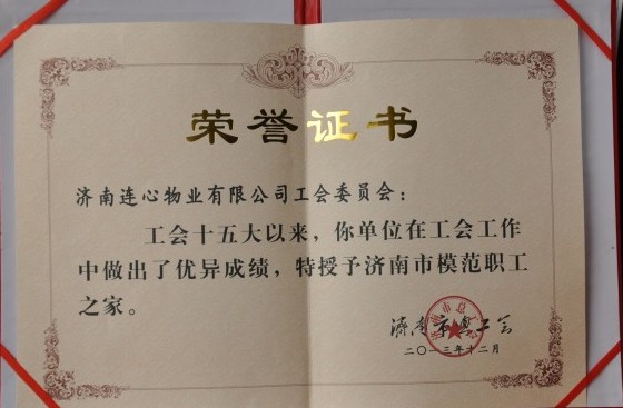 濟(jì)南連心物業(yè)有限公司被授予濟(jì)南市“模范職工之家”稱(chēng)號(hào)