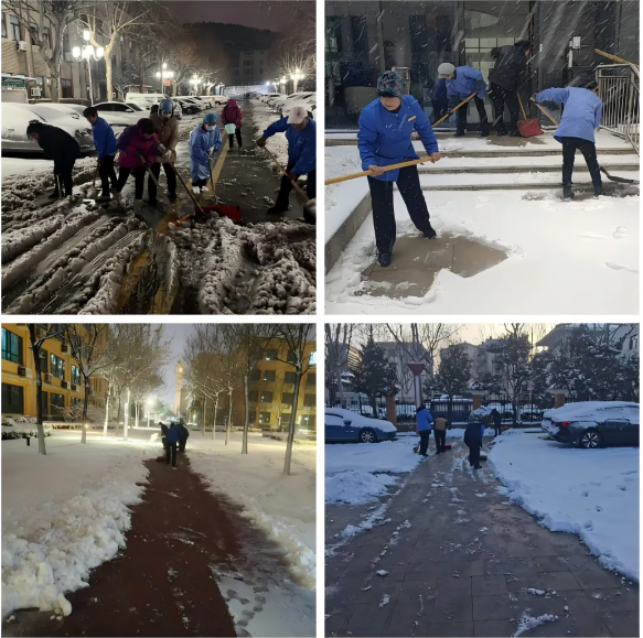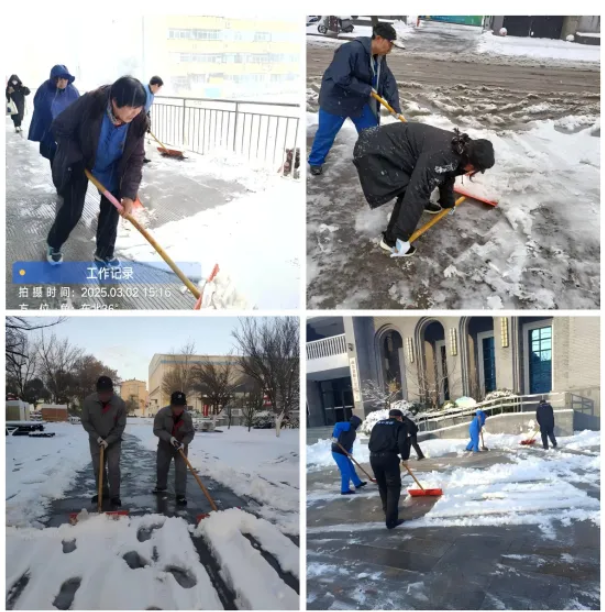 齊心協(xié)力保障暢通。為確保業(yè)主出行安全,連心物業(yè)各項(xiàng)目員工分工明確,配合默契,有的負(fù)責(zé)清掃積雪,有的負(fù)責(zé)撒布融雪劑,有的負(fù)責(zé)引導(dǎo)車輛通行。經(jīng)過數(shù)小時(shí)的奮戰(zhàn),各單位主干道等區(qū)域積雪被清理干凈,為業(yè)主開辟出一條條“安全通道”。