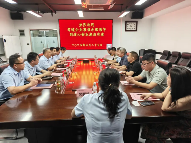 2025年6月25日,篤道企業(yè)家俱樂部會(huì)長、山東拓博文化傳媒有限公司董事長馬士平,山東國融空調(diào)工程有限公司董事長陳偉,山東圣諾發(fā)展家具有限公司董事長苗科,濟(jì)南萱薇業(yè)食品銷售有限公司董事長邵紅征,濟(jì)南郵政薛童戈,山東永森出國有限公司董事長張萌,中弈棋院奕點(diǎn)點(diǎn)少兒圍棋空間主理人張洪,濟(jì)南趵突泉白酒銷售有限公司銷售經(jīng)理吳麗萍等一行到連心物業(yè)進(jìn)行工作互動(dòng)交流。連心物業(yè)黨支部書記、董事長王宏勇,黨支部副書記、總經(jīng)理曹立,副總經(jīng)理李義、孟令乾,工會(huì)主席李寶建等參加此次工作交流接待活動(dòng)。