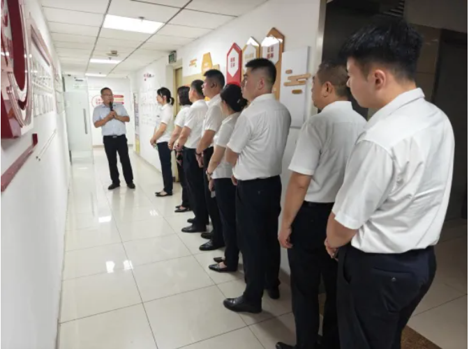 隨后到連心物業(yè)總部,連心物業(yè)黨支部委員、工會主席李寶建帶領參觀黨建陣地,詳細介紹了黨員教育管理、黨建品牌創(chuàng)建、黨建與業(yè)務融合等方面的經(jīng)驗做法,展示了連心物業(yè)在陣地建設、黨員作用發(fā)揮等方面的創(chuàng)新舉措。