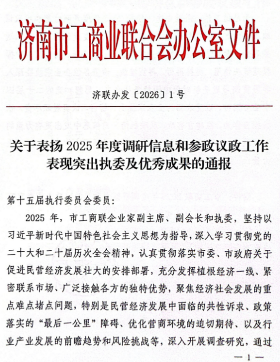 2024年2月24日,濟(jì)南市工商聯(lián)頒布“2025年度調(diào)研信息和參政議政工作表現(xiàn)突出執(zhí)委及優(yōu)秀成果”,濟(jì)南連心物業(yè)有限公司董事長王宏勇等43名執(zhí)委獲評表現(xiàn)突出執(zhí)委,他撰寫的《關(guān)于加快AI時代我市物業(yè)企業(yè)智慧化轉(zhuǎn)型的建議》獲評優(yōu)秀成果。