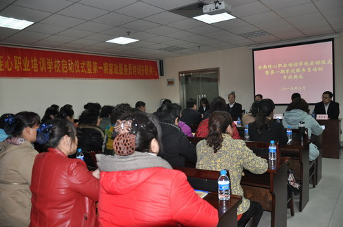 濟南連心職業(yè)培訓學校是由濟南連心物業(yè)有限公司出資設立,2015年1月12日在濟南市民政局登記注冊,培訓內(nèi)容主要為初級、中級家政服務員和物業(yè)管理員。啟動儀式上,首先濟南市職業(yè)技能鑒定中心陳主任宣讀《關于同意設立濟南連心職業(yè)培訓學校的批復》,專家組依據(jù)民辦職業(yè)培訓機構設立標準對申報材料進行了綜合評審,并對辦學場地、教學設備進行了考察評估,經(jīng)研究同意設立濟南連心職業(yè)培訓學校,并頒發(fā)《民辦學校辦學許可證》。