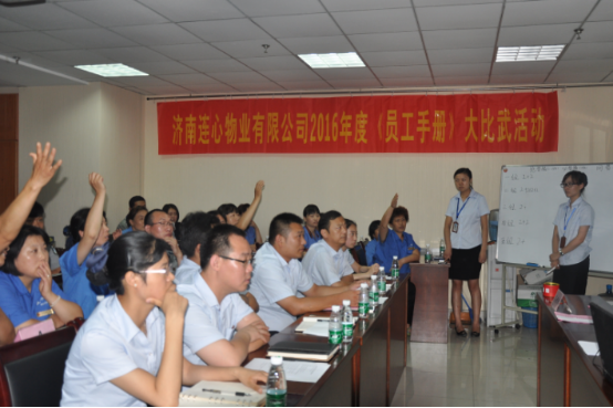 2016年7月26日下午14:00,濟南連心物業(yè)有限公司工會在公司2307會議室舉辦了2016年上半年《員工手冊》理論大比武活動。來自各項目選拔出來的40名《員工手冊》考試優(yōu)秀員工參加了此次大比武活動。