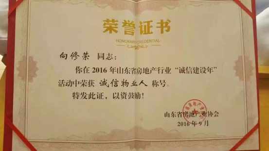 ——向修榮、王雪梅榮獲“山東誠(chéng)信物業(yè)人”稱號(hào)