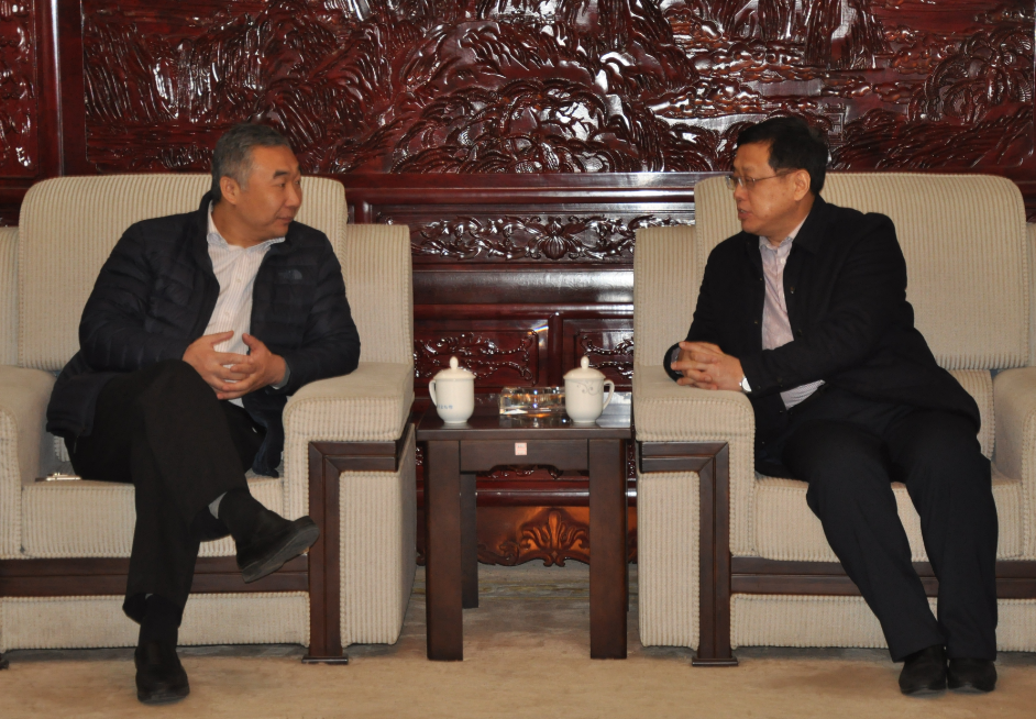 山東省人大常委、中國(guó)拍賣(mài)協(xié)會(huì)副會(huì)長(zhǎng)、山東省拍賣(mài)協(xié)會(huì)會(huì)長(zhǎng)李偉(左)與連心物業(yè)黨支部書(shū)記、總經(jīng)理王宏勇(右)進(jìn)行交流