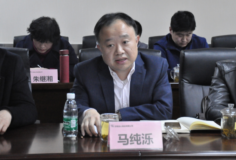 濟南連心物業(yè)有限公司總經(jīng)理王宏勇(中)與各位供應(yīng)商代表進行交流