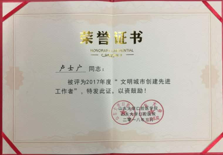會(huì)議總結(jié)了2017年度醫(yī)(學(xué))院的各項(xiàng)工作,并對(duì)2017年度工作表現(xiàn)突出的員工進(jìn)行了表彰。濟(jì)南連心物業(yè)有限公司駐山東大學(xué)口腔醫(yī)(學(xué))院項(xiàng)目員工盧士廣同志,在協(xié)助口腔醫(yī)(學(xué))院文明城市創(chuàng)建工作中勤勤懇懇、兢兢業(yè)業(yè),得到了院方及院領(lǐng)導(dǎo)的高度認(rèn)可,被評(píng)為山東大學(xué)口腔醫(yī)(學(xué))院2017年度“文明城市創(chuàng)建先進(jìn)工作者”。