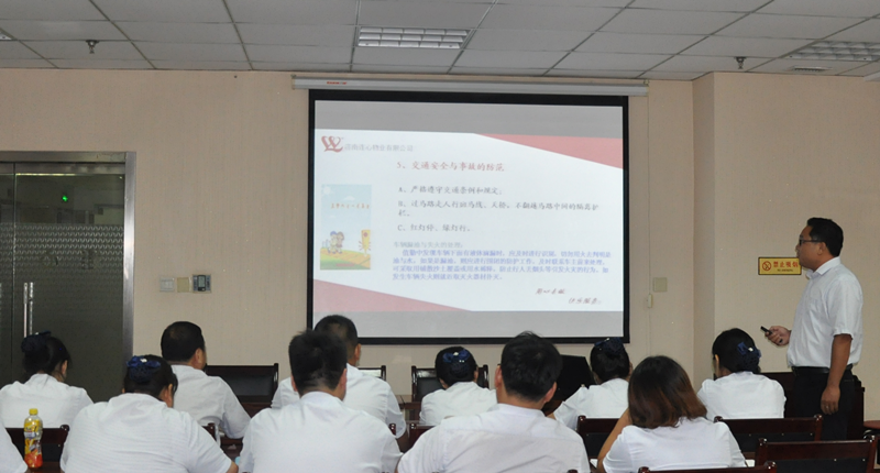 為加強員工安全生產(chǎn)自我保護能力,提高員工安全生產(chǎn)意識。濟南連心物業(yè)有限公司于2018年8月17日下午,在連心職業(yè)培訓學校2307教室舉行了關(guān)于《公共秩序維護安全防范》專題培訓,公司總部辦公室人員、各項目經(jīng)理、項目內(nèi)勤、項目主管等近40人參加了此次安全培訓。這是繼5月11日濟南連心物業(yè)有限公司“標準建設(shè)年”暨設(shè)施設(shè)備管理培訓后的又一次專題培訓。
