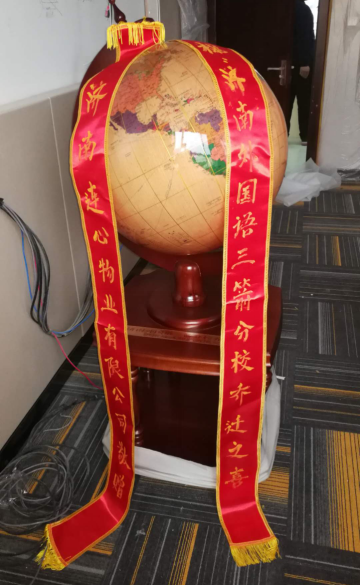 本次喬遷儀式由濟(jì)南外國(guó)語(yǔ)學(xué)校副校長(zhǎng)苗翠強(qiáng)主持,全校教職工代表300余人參加了此次活動(dòng)。濟(jì)南連心物業(yè)有限公司黨支部副書(shū)記、總經(jīng)理戚圣輝代表公司為學(xué)校送去了一個(gè)地球儀—寓意濟(jì)南外國(guó)語(yǔ)學(xué)校聲譽(yù)譽(yù)滿全球。