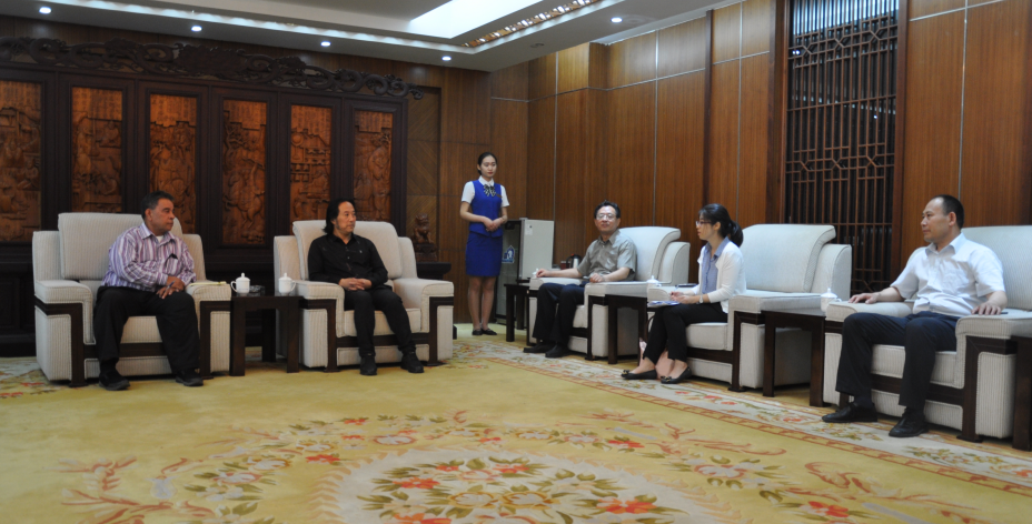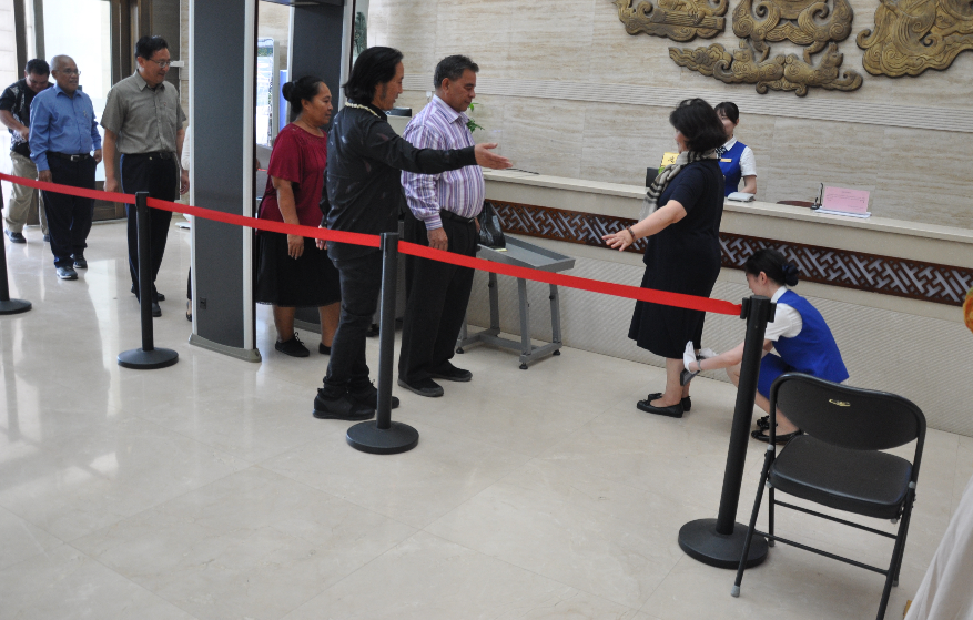 2019年6月14日,濟(jì)南連心物業(yè)有限公司駐山東省文化館項(xiàng)目迎來(lái)了一批遠(yuǎn)道而來(lái)的客人,密克羅尼西亞聯(lián)邦科斯雷州的州長(zhǎng)卡森?西格拉一行6人,在山東省外事辦公室美大處調(diào)研員項(xiàng)琳爽,山東省文化和旅游廳對(duì)外文化交流合作處二級(jí)調(diào)研員王榮國(guó)陪同下來(lái)文化館參觀考察。山東省文化館副館長(zhǎng)徐永生、館辦公室主任李思峰、非遺文化遺產(chǎn)辦公室主任王福成以及社會(huì)文化志愿服務(wù)部主任徐欣參加了此次參觀考察活動(dòng)。