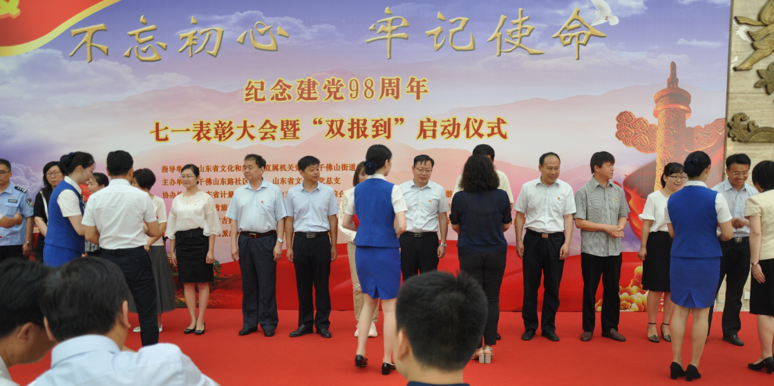 為隆重紀(jì)念中國(guó)共產(chǎn)黨成立98周年,回顧黨的光輝歷程,謳歌黨的豐功偉績(jī),展示黨十八大以來(lái)社區(qū)基層黨組織和廣大黨員充分發(fā)揮戰(zhàn)斗堡壘作用和先鋒模范作用,以及在各條戰(zhàn)線,各個(gè)領(lǐng)域,各項(xiàng)工作中取得的豐碩成果,積極營(yíng)造積極健康向上,追趕超越的良好社會(huì)氛圍。2019年6月27日上午9:30,由山東省文化和旅游廳、千佛山黨工委指導(dǎo),山東省文化館、千佛山東路社區(qū)黨委主辦,十五家社區(qū)共建單位協(xié)辦的“不忘初心 牢記使命七一表彰大會(huì)暨‘雙報(bào)到’啟動(dòng)儀式在山東省文化館隆重舉行,濟(jì)南連心物業(yè)有限公司駐山東省文化館項(xiàng)目部負(fù)責(zé)此次活動(dòng)的全面后勤保障工作。