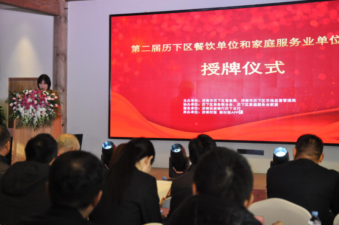 濟(jì)南市商務(wù)局副局長(zhǎng)張娟,歷下區(qū)副區(qū)長(zhǎng)劉佳,濟(jì)南市商務(wù)局商貿(mào)發(fā)展處處長(zhǎng)張鶴龍,歷下區(qū)商務(wù)局局長(zhǎng)田耕,歷下區(qū)市場(chǎng)監(jiān)管局局長(zhǎng)楊彩云,歷下區(qū)商務(wù)局商貿(mào)服務(wù)中心副主任王詩(shī)虹,歷下區(qū)市場(chǎng)監(jiān)督管理局副局長(zhǎng)李兆凰等領(lǐng)導(dǎo)參加了此次授牌活動(dòng),活動(dòng)伊始,獲評(píng)企業(yè)家們一起觀看了企業(yè)宣傳片、專家實(shí)地評(píng)審短視頻,表明此次活動(dòng)的公平性及權(quán)威性,上午9:50,濟(jì)南市商務(wù)局副局長(zhǎng)張娟同志對(duì)本次活動(dòng)開(kāi)展進(jìn)行了致辭,她表示濟(jì)南市商務(wù)局對(duì)此次活動(dòng)高度重視,本次活動(dòng)意義重大,旨在推動(dòng)家庭服務(wù)業(yè)的健康有序發(fā)展,并鼓勵(lì)獲獎(jiǎng)企業(yè)不忘初心砥礪前行,進(jìn)一步努力打造家庭服務(wù)業(yè)品牌企業(yè),推動(dòng)家庭服務(wù)業(yè)規(guī)范化、職業(yè)化、標(biāo)準(zhǔn)化發(fā)展。