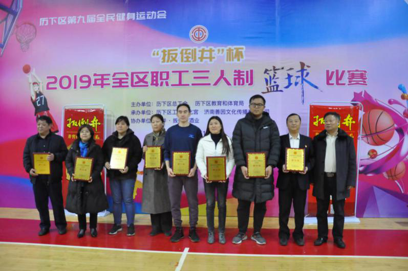 2019年11月25日,由濟南市歷下區(qū)總工會、歷下區(qū)教育、歷下區(qū)體育局主辦,歷下區(qū)工人文化宮、濟南善因文化傳播有限公司承辦,國井·扳倒井酒業(yè)協(xié)辦的“扳倒井”杯2019年歷下區(qū)職工三人制籃球比賽在希望之星籃球館正式開賽。包含連心物業(yè)在內的共計24支支隊伍參加比賽,濟南連心物業(yè)有限公司派出6名隊員參加此次比賽。