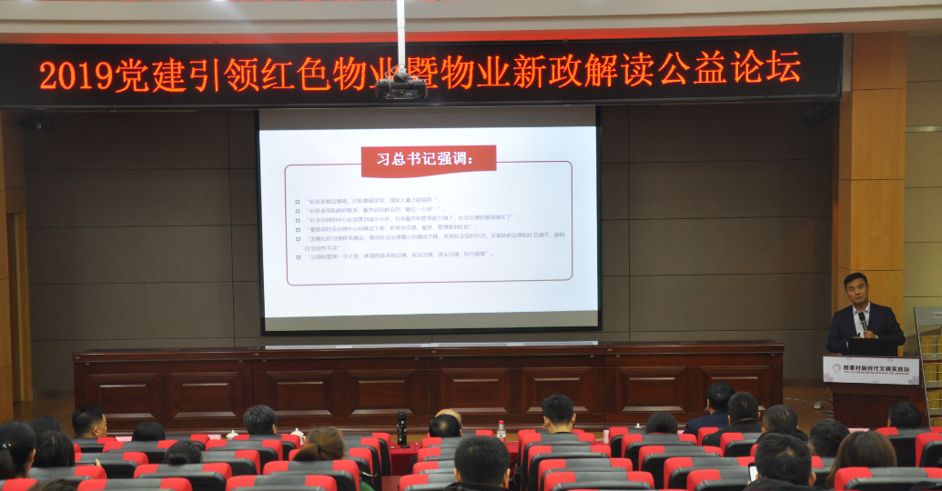 2019年12月21日上午8:50,在濟(jì)南市住房和城鄉(xiāng)建設(shè)局物業(yè)處指導(dǎo)下,由濟(jì)南市物業(yè)管理行業(yè)協(xié)會(huì)主辦,山東三克鐳房地產(chǎn)咨詢有限公司、山東明英物業(yè)服務(wù)有限公司、山東?;鄯煞?wù)有限公司協(xié)辦的以“新時(shí)代黨建引領(lǐng)紅色物業(yè)新發(fā)展”為主題的論壇,在山東明英物業(yè)服務(wù)有限公司服務(wù)的姚家雁翔苑黨群服務(wù)站二樓多功能廳準(zhǔn)時(shí)舉行。