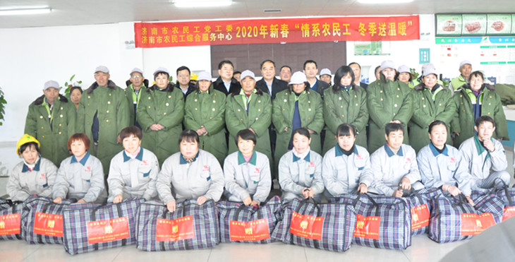 此次慰問活動由中共濟南市委農(nóng)民工工作委員會主辦、濟南市公共就業(yè)服務(wù)中心〔外來務(wù)工人員(農(nóng)民工)綜合服務(wù)中心〕承辦。丁局長一行送來的不僅是濟南市委、市政府對濟南連心物業(yè)有限公司所有員工的關(guān)心與關(guān)愛,更讓辛勤工作在一線崗位上的連心員工感受到了來自上級領(lǐng)導(dǎo)送來的溫暖與新春祝福。丁局長重點強調(diào)農(nóng)民工兄弟姐妹在日常工作中的安全問題,以及對我們平時工作開展的肯定,并叮囑大家注意防寒保暖、注意保護好身體。