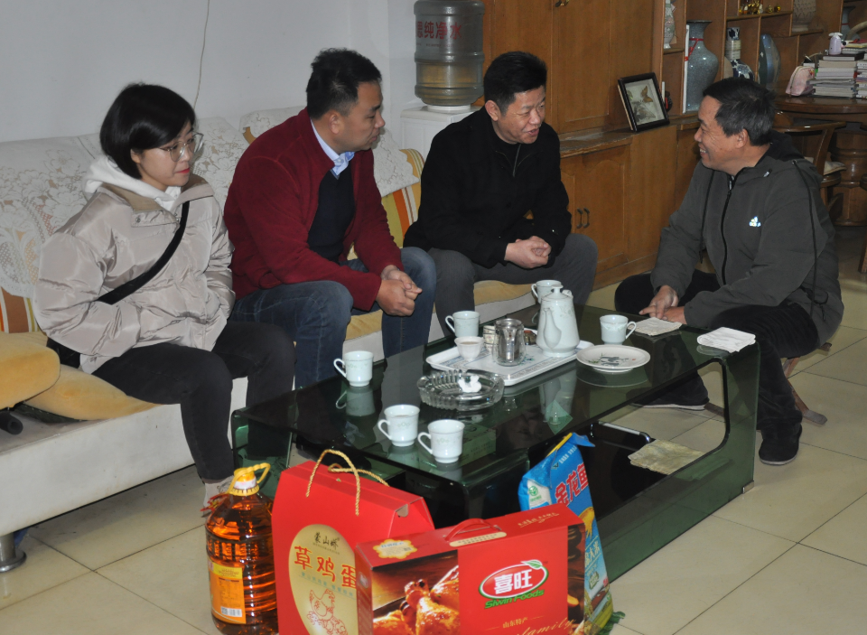 濟南市物業(yè)管理行業(yè)協(xié)會副會長王建國(左二)濟南市物業(yè)管理行業(yè)協(xié)會副秘書長吳文濤(左三)走訪慰問我公司特困職工