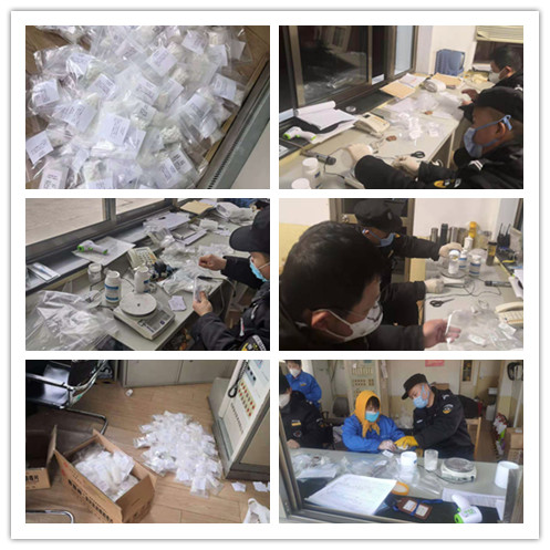 在假期都未返工期間,博士倫領(lǐng)導(dǎo)購(gòu)置了10箱二氧化氯消毒片,交由我們分裝,100粒/袋,最初分裝時(shí)嗆的大家眼干舌燥、干咳連連。秩序維護(hù)班長(zhǎng)楊文國(guó)積極想辦法,利用天平稱,隊(duì)員劉義主動(dòng)用自己的玻璃水杯做工具,按量均分,提高了效率,隊(duì)員們?nèi)缤魉€工人,分工鮮明,井然有序,歷時(shí)七天七夜,圓滿完成分裝任務(wù)。因佩戴膠皮手套,楊文國(guó)的雙手都被捂脫了皮,但他微笑著說(shuō),只要抗疫勝利,什么都是值得的。