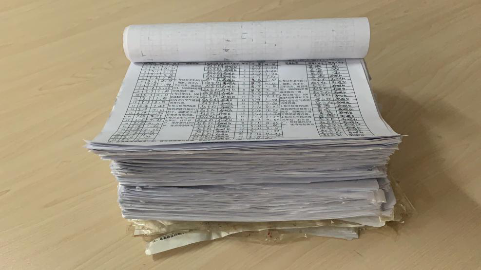 連心物業(yè)駐輸變電項目班長鄭明紅,正是眾多奮戰(zhàn)在一線物業(yè)人中的一員。她所負(fù)責(zé)的區(qū)域有124個消毒點位,她每天帶領(lǐng)24名員工對所負(fù)責(zé)區(qū)域的辦公室、走廊、衛(wèi)生間、風(fēng)淋門、樓梯通道、生產(chǎn)車間等共計進(jìn)行308次消毒工作。除了完成每日的防控工作,她還給員工加油打氣,確保在防疫工作中不出一絲差錯。1個月消毒工作下來,完成各類消毒記錄共計四百余張。