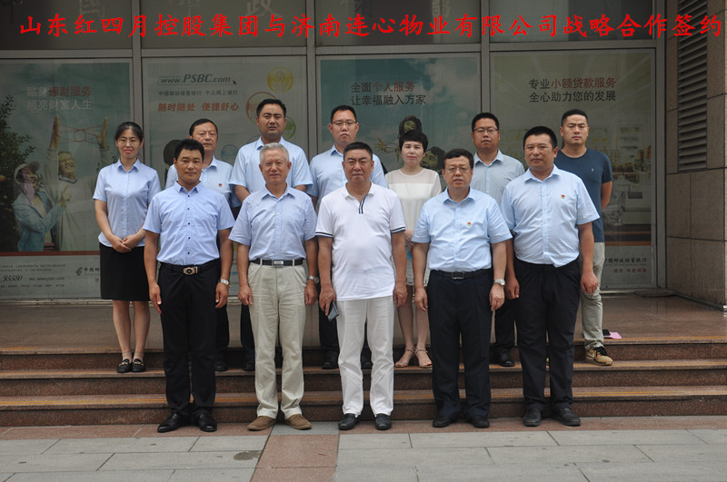 2020年8月9日上午,山東紅四月控股集團與濟南連心物業(yè)有限公司達成戰(zhàn)略合作協(xié)議,在連心物業(yè)公司2308會議室正式簽署合作協(xié)議,共同出資成立濟南捷瑞連心物業(yè)服務(wù)有限公司。山東紅四月控股集團董事長段秀峰、黨支部書記段樹森;濟南連心物業(yè)有限公司黨支部書記、董事長王宏勇,總經(jīng)理戚圣輝分別帶領(lǐng)各自班子成員共同出席了簽約儀式。