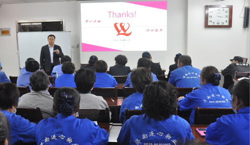 連心物業(yè)總經(jīng)理助理、連心職業(yè)培訓(xùn)學(xué)校校長李義主講,來自各項(xiàng)目部班組長50余人參加了本次班組長培訓(xùn)。