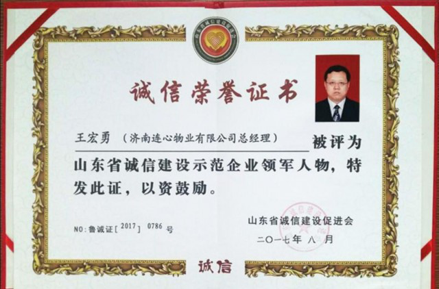 其實,他的頭銜還有很多,像山東省誠信建設(shè)示范企業(yè)領(lǐng)軍人物、濟(jì)南市勞動模范、濟(jì)南市工商聯(lián)常委、濟(jì)南市工商聯(lián)直屬商會副會長、濟(jì)南市物業(yè)管理行業(yè)協(xié)會副會長和濟(jì)南市“五一勞動獎?wù)隆鲍@得者,等等。