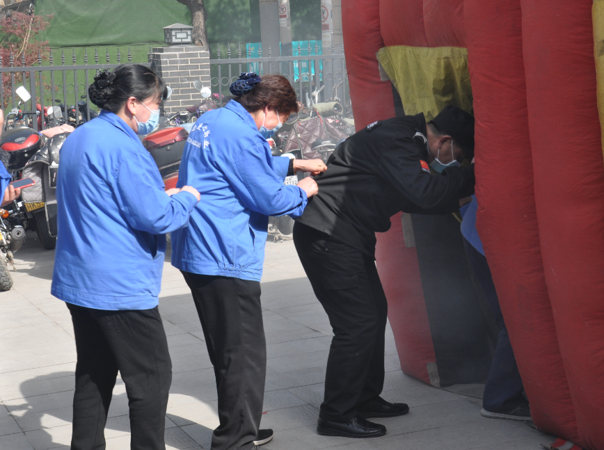 副總經(jīng)理曹立講到,2021年是不平凡的一樣,濟(jì)南市“幾場(chǎng)”大火也為我們的物業(yè)工作起到了警示作用,作為業(yè)主單位的后勤保障單位,我們?cè)谧龊萌粘N飿I(yè)服務(wù)的同時(shí),更重要的是保障業(yè)主的安全問(wèn)題,消防演習(xí)不僅加強(qiáng)了項(xiàng)目員工安全意識(shí),同時(shí)也強(qiáng)化了項(xiàng)目部應(yīng)對(duì)突發(fā)災(zāi)難事件的應(yīng)急處理能力,我們只有學(xué)會(huì)基本的處理應(yīng)急事變的能力,熟悉消防“四懂四會(huì)”和消防“5、30、60”,才能成為一名合格的物業(yè)人員。大家在體驗(yàn)逃生帳篷時(shí),要將較為抽象的安全演練變成具體的實(shí)戰(zhàn)演習(xí),時(shí)刻擰緊安全弦,全力保障服務(wù)單位的生命安全。