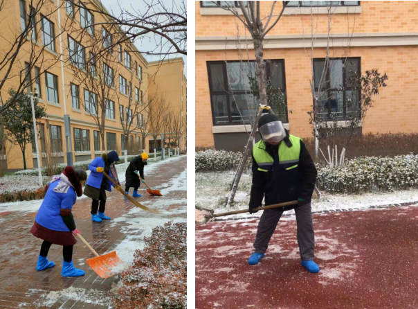 首先與學(xué)校溝通,將清雪工具提前申領(lǐng),并將存放點(diǎn)告知員工,其次按照師生出行主要路線,劃分清雪責(zé)任區(qū)域,明確責(zé)任區(qū)內(nèi)清雪人員。