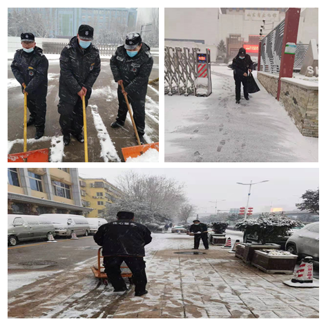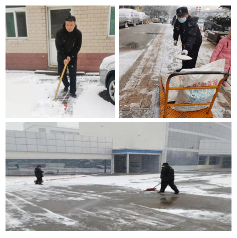 在總經(jīng)理李寶建的帶領(lǐng)下從主干道,到每一個(gè)出入口,從寫字樓前到每一個(gè)車位,都進(jìn)行了徹底打掃,大家熱火朝天的工作渾然不覺不知是雪水還是汗水打濕的衣領(lǐng)和凍得發(fā)紅的臉,只想快速清除積雪,暢通道路,踐行連心“1+1=1”的服務(wù)理念。