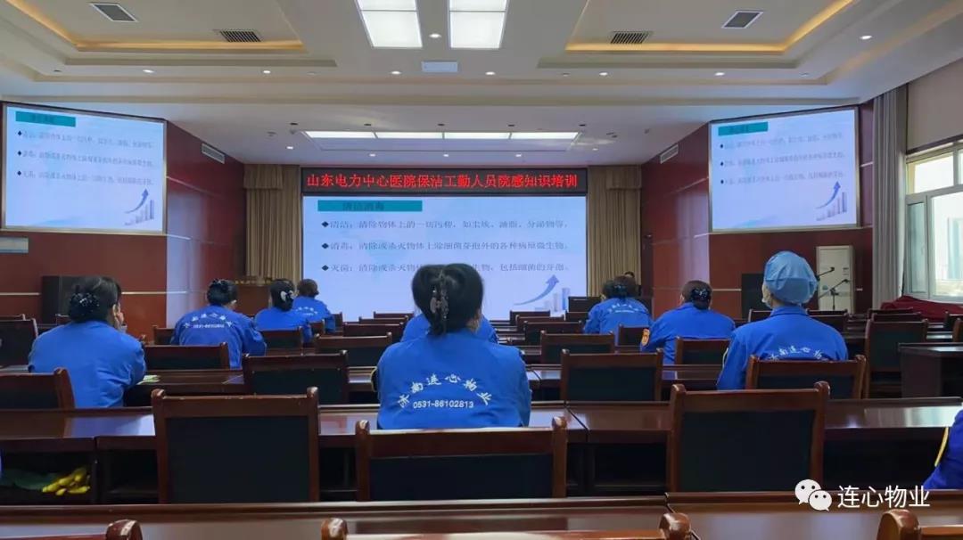 春節(jié)臨近,為進(jìn)一步做好醫(yī)院院感預(yù)防和控制工作,2022年1月28日,連心物業(yè)駐山東省電力中心醫(yī)院項(xiàng)目全體保潔人員參加了由醫(yī)院感染管理辦公室舉辦的培訓(xùn)。