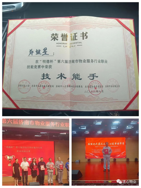 為弘揚(yáng)工匠精神,進(jìn)一步提升物業(yè)服務(wù)從業(yè)人員的業(yè)務(wù)技能,展示物業(yè)服務(wù)行業(yè)的專(zhuān)業(yè)形象和精神風(fēng)貌,8月26-27日,“明德杯”第六屆濟(jì)南市物業(yè)服務(wù)行業(yè)職業(yè)技能競(jìng)賽在山東現(xiàn)代物業(yè)管理專(zhuān)修學(xué)院隆重召開(kāi)。濟(jì)南連心物業(yè)有限公司、濟(jì)南產(chǎn)發(fā)物業(yè)有限公司參加此次競(jìng)賽。濟(jì)南產(chǎn)發(fā)連心物業(yè)管理有限公司電工鄭繼星獲得電工賽項(xiàng)第3名的好成績(jī)并榮獲“技術(shù)能手”榮譽(yù)稱(chēng)號(hào)。
