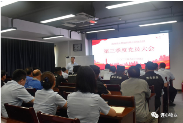 2023年9月14日下午,濟南連心物業(yè)有限公司黨支部在1701黨員活動室召開2023年第三季度黨員大會,公司全體黨員、入黨積極分子及遞交入黨申請書人員40人參加本次大會。