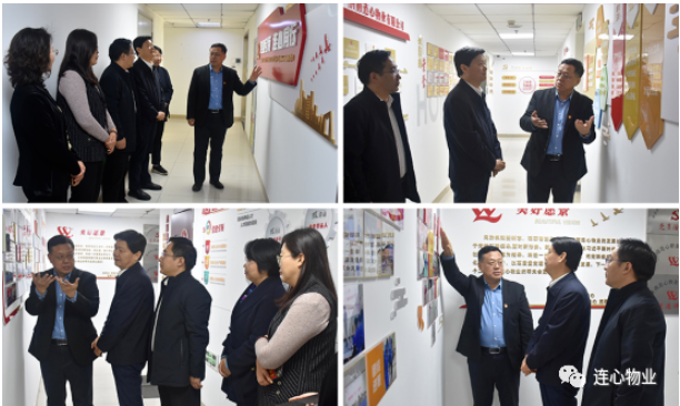 濟(jì)南連心物業(yè)有限公司黨支部書記、董事長(zhǎng)王宏勇陪同歷下區(qū)人大領(lǐng)導(dǎo)參觀了公司總部“黨建引領(lǐng)、連心同行”為主題的黨建文化墻、黨建活動(dòng)室、連心職業(yè)培訓(xùn)學(xué)校等,并對(duì)連心黨建文化墻的黨建引領(lǐng)連心同行、發(fā)展歷程、企業(yè)文化、企業(yè)榮譽(yù)、三必談五必訪、三會(huì)一課、統(tǒng)戰(zhàn)同心、雙培養(yǎng)雙帶動(dòng)等十九個(gè)宣傳小版塊進(jìn)行了重點(diǎn)講解。隨后在公司會(huì)務(wù)中心進(jìn)行座談交流。