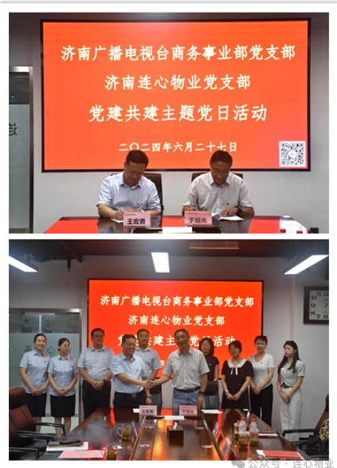 濟南廣播電視臺商務事業(yè)部黨支部和濟南連心物業(yè)黨支部分別介紹了各自支部的黨建工作開展情況。濟南廣播電視臺商務事業(yè)部黨支部以其媒體融合的優(yōu)勢,積極探索黨建與媒體融合的新模式,通過多樣化的媒體形式宣傳黨的路線、方針、政策,提高了黨員的思想政治素質和業(yè)務能力。濟南連心物業(yè)黨支部書記王宏勇介紹支部黨建工作情況,結合自身物業(yè)服務的特點,將黨建工作融入日常服務中,提高了服務質量,增強了員工的凝聚力和向心力。活動中,雙方簽訂了黨建共建協(xié)議,明確了未來合作的方向和目標。