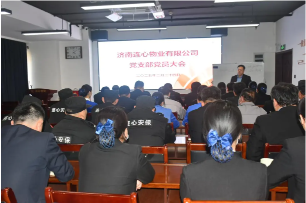 2025年2月24日下午,濟南連心物業(yè)有限公司黨支部在1701會議室召開第一季度黨員大會,公司黨員41人參加本次大會、入黨積極分子及遞交入黨申請書人員列席本次大會。