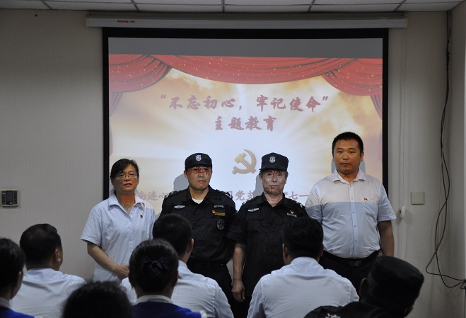 濟(jì)南連心物業(yè)有限公司黨支部副書記、總經(jīng)理戚圣輝與優(yōu)秀黨員合影留念