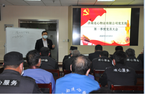 2020年3月31日下午2點(diǎn),濟(jì)南連心物業(yè)有限公司黨支部2020年度第一季度黨員大會(huì)在公司2307黨群活動(dòng)中心召開(kāi),公司全體黨員、入黨積極分子、遞交入黨申請(qǐng)書(shū)人員等40余人參加了此次會(huì)議。